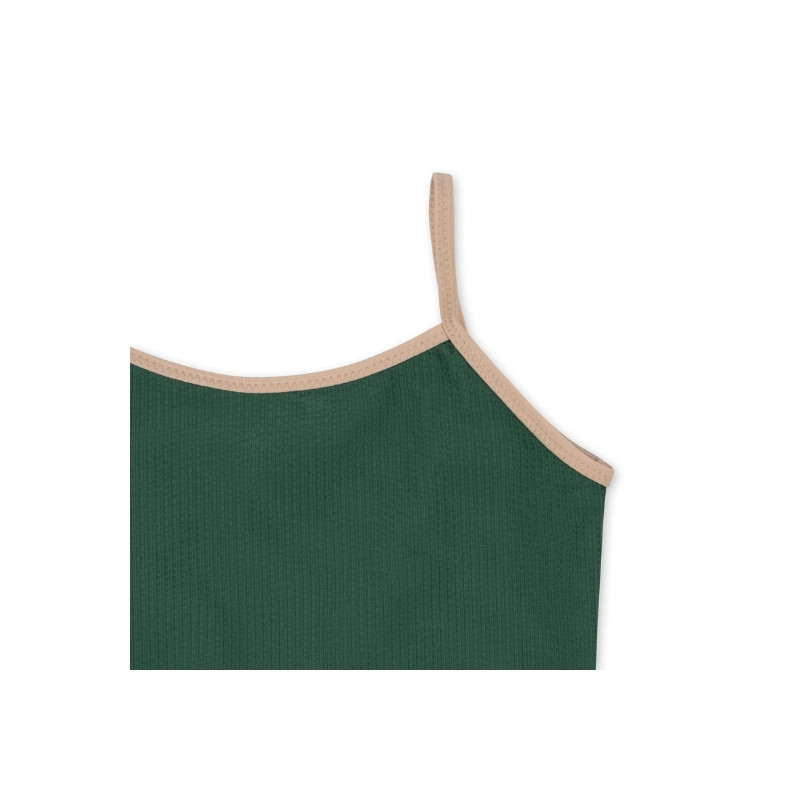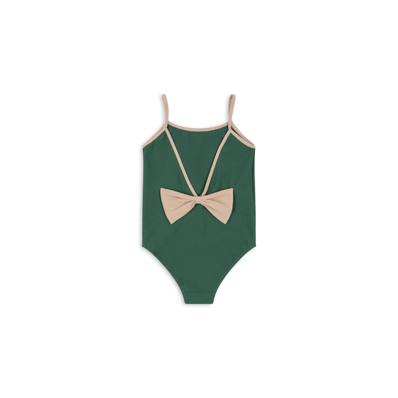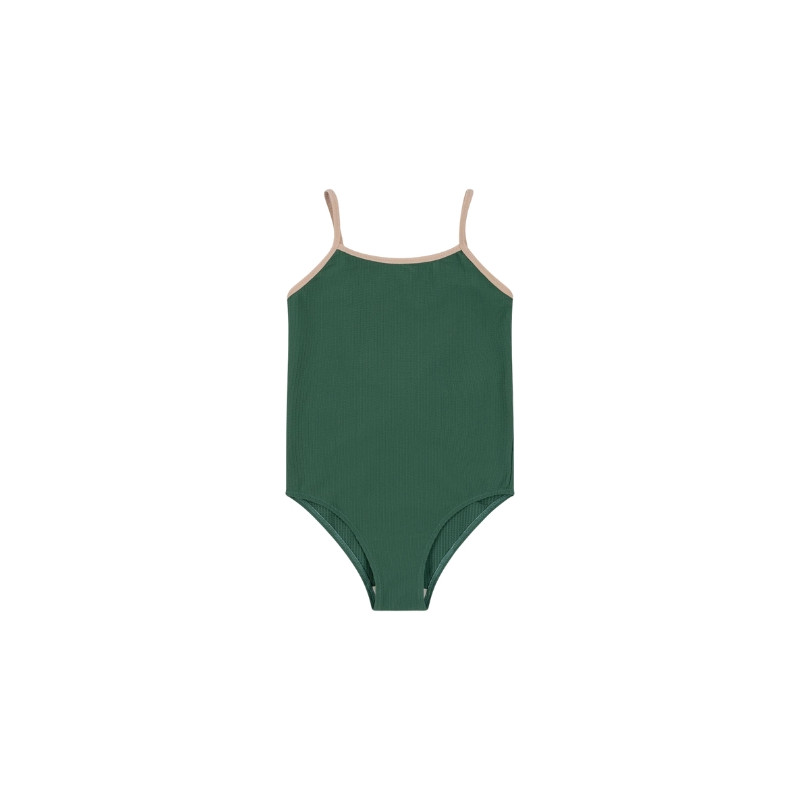 Le maillot de bain Bowie de chez Konges Slojd, allie élégance et confort pour les jeunes nageuses. Conçu dans un style minimaliste avec une touche de sophistication, ce maillot de bain est parfait pour les journées ensoleillées à la plage ou à la piscine. Sa couleur verte chic est complétée par des détails en beige pour un contraste raffiné.