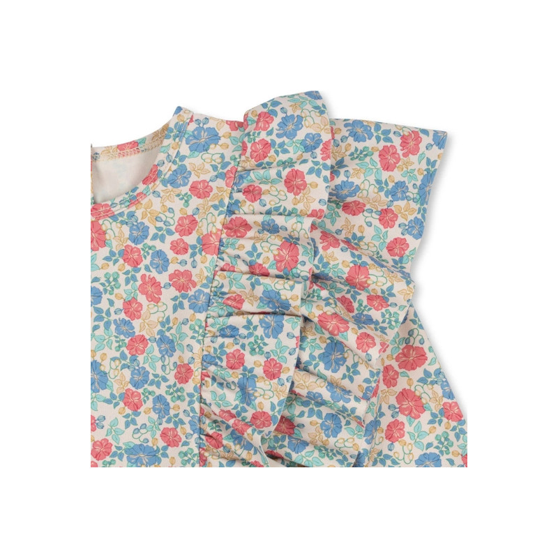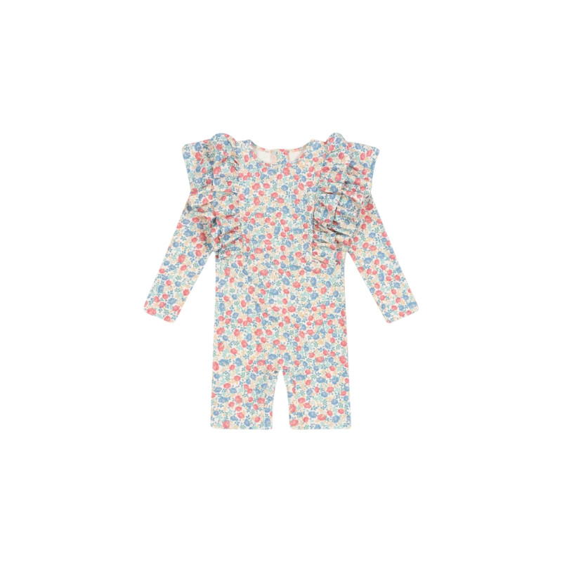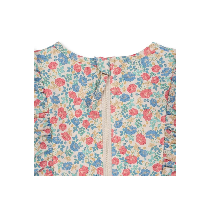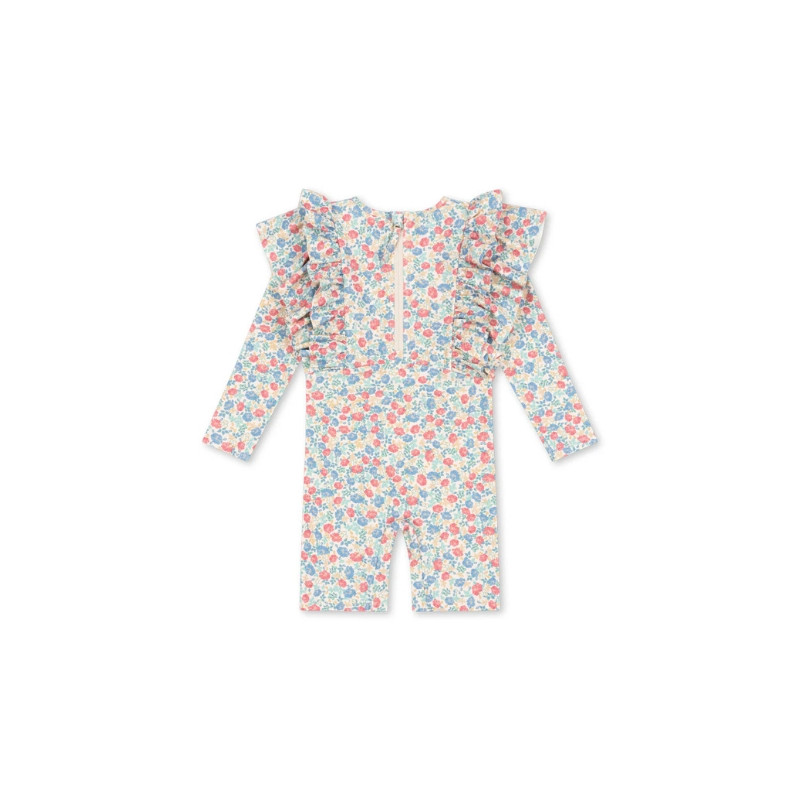 Voici la combinaison de bain Konges Slojd qui fait rimer éclaboussures et élégance ! Avec ses manches longues, ses volants espiègles et son imprimé floral à faire fondre les glaces, cette pièce est une invitation à barboter avec panache, tout en restant protégée du soleil.