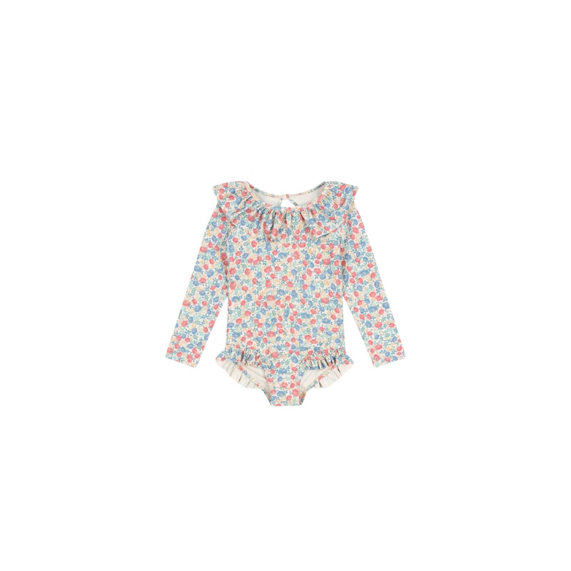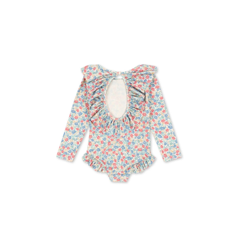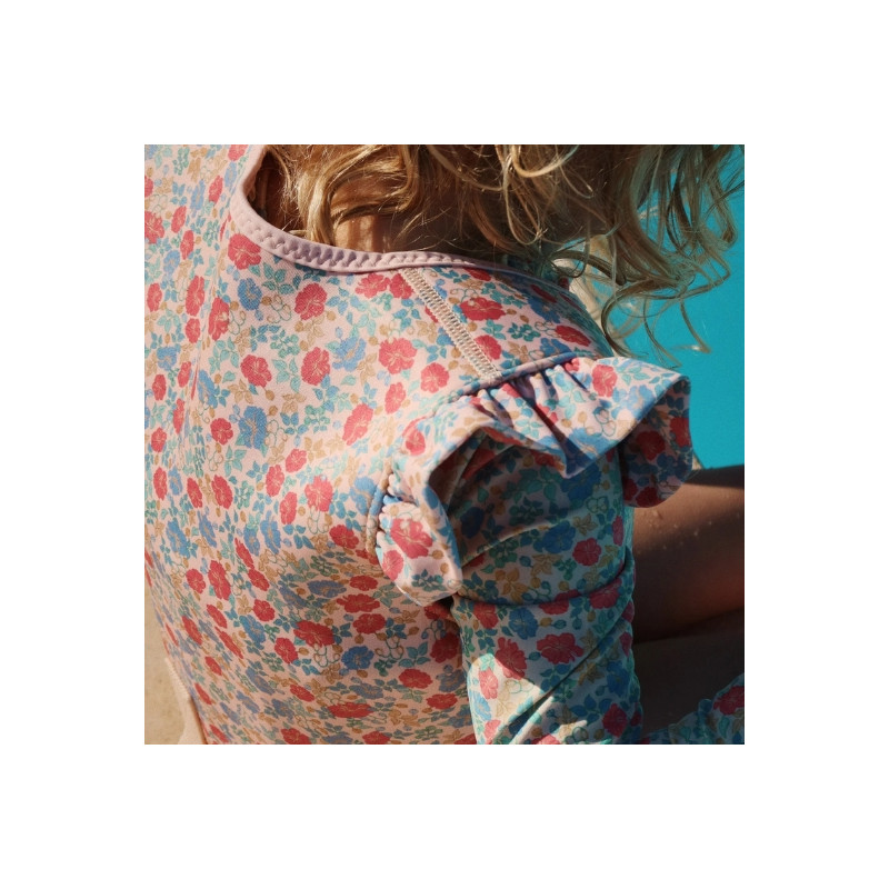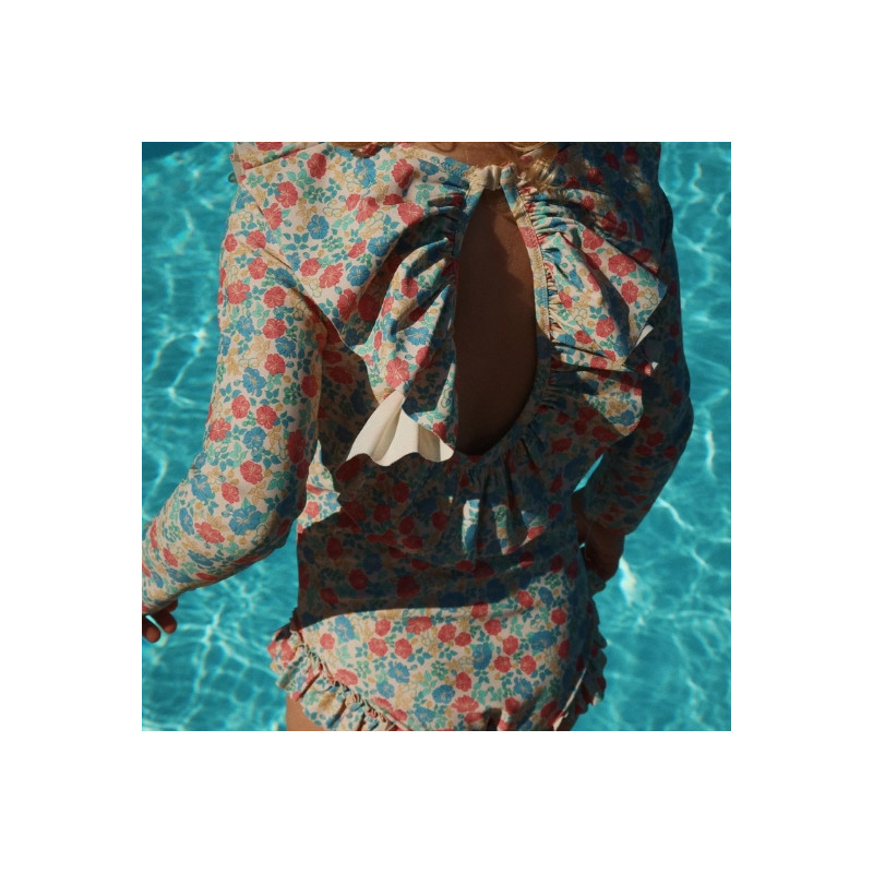 Ce maillot de bain fleuri Konges Slojd est la définition même de la mignonnerie estivale : entre volants dansants, dos joliment ouvert et motif bucolique, il transforme chaque baignade en parade enchantée. Et en plus d'être craquant, il est pensé pour protéger la peau sensible de vos minis nageurs.