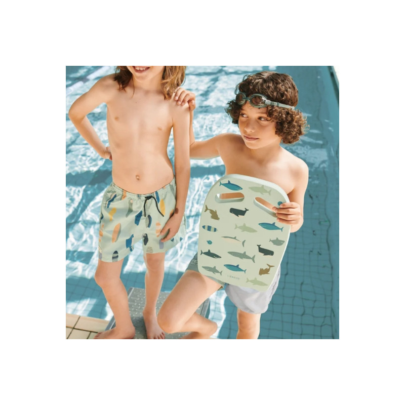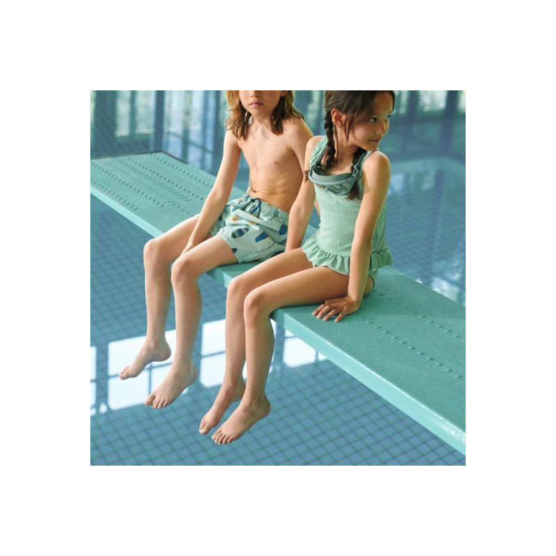 Laissez votre petit plongeur profiter pleinement de la piscine ou des vagues avec le short de bain DUKE au style sportif inspiré des surfeurs. Parfait pour nager, jouer au bord de l’eau ou faire une pause glace après la baignade, il combine confort et liberté de mouvement. Confectionné dans un mélange de polyester recyclé certifié GRS et de nylon, il offre une protection UV 40+ et un tissu respirant à séchage rapide. Sa ceinture élastique avec cordon de réglage assure un ajustement optimal, tandis que les poches latérales et le slip intérieur en filet apportent praticité et maintien. Un design classique et polyvalent, idéal pour tout l’été.