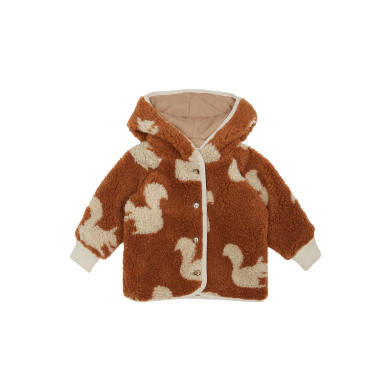 Le manteau écureuil marron de chez Émile et Ida enveloppe bébé de douceur avec sa fausse fourrure moelleuse. Doté d'une capuche et d'une fermeture à boutons-pression, il est aussi pratique que confortable. Un indispensable chaud et stylé pour l’hiver.
