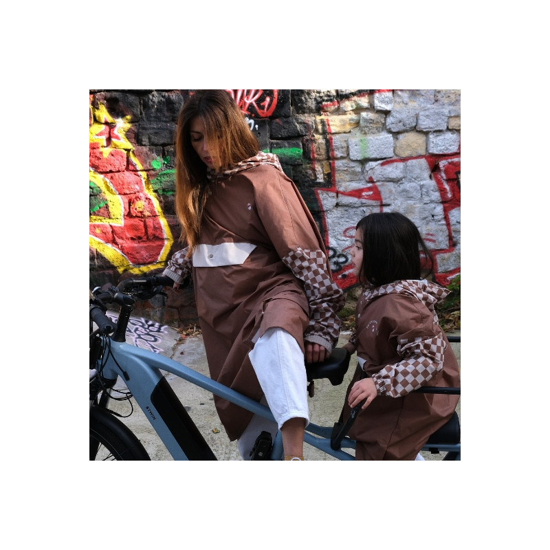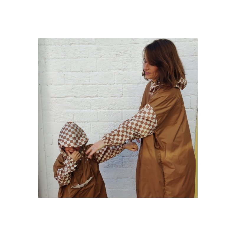 Découvrez le poncho à capuche, waterproof et coupe vent, dans son imprimé "damier" de la marque Poule Party. Ce poncho de pluie éco-responsable est stylé et recyclé. Un peu old school, il est imaginé avec un imprimé intemporel qui donne vie à cet accessoire souvent trop triste. Il dispose de manches intégrées, d'une large capuche casquette afin d'assurer une protection optimale contre la pluie et qui permet de passer facilement au dessus d'un casque de vélo, de skate ou de trottinette. Ce poncho dispose d'ouverture sur les côtés et au niveau de la tête à boutons clips. Il est utile toute l'année : que ce soit en ville, à la campagne ou à la montagne... Ce sera votre compagnon idéal !