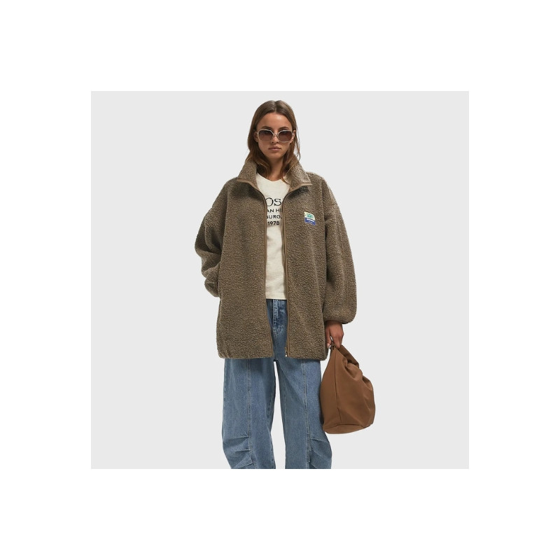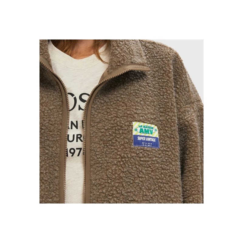 Veste oversize en 100 % polyester recyclé, ultra-douce et confortable. Col montant, fermeture zippée, poches latérales et écusson AMV sur la poitrine. Un essentiel casual à porter au quotidien. Lavage à 30 °C.