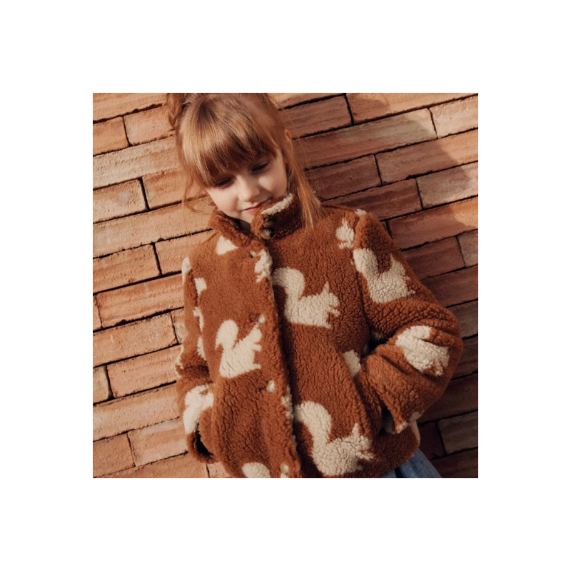 Le manteau écureuil marron de chez Émile et Ida enveloppe votre enfant de douceur avec sa fausse fourrure moelleuse. Doté d'une fermeture à boutons-pression, il est aussi pratique que confortable. Un indispensable chaud et stylé pour l’hiver.
