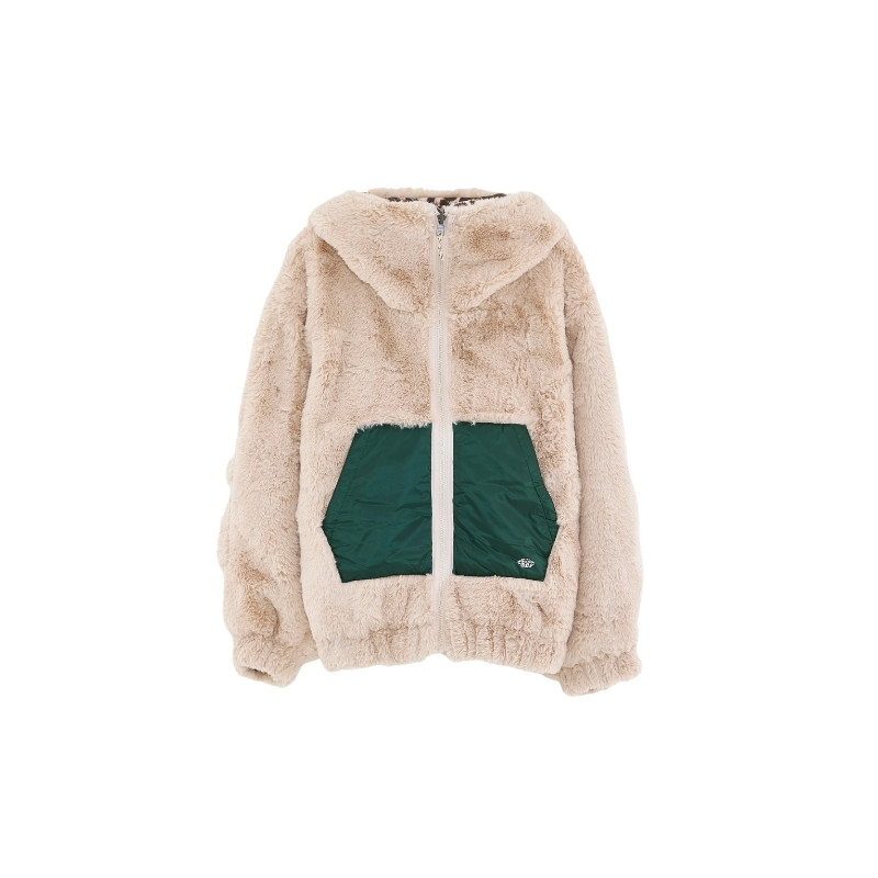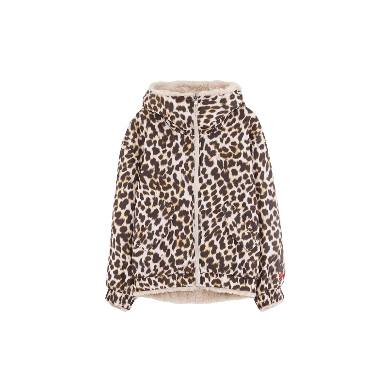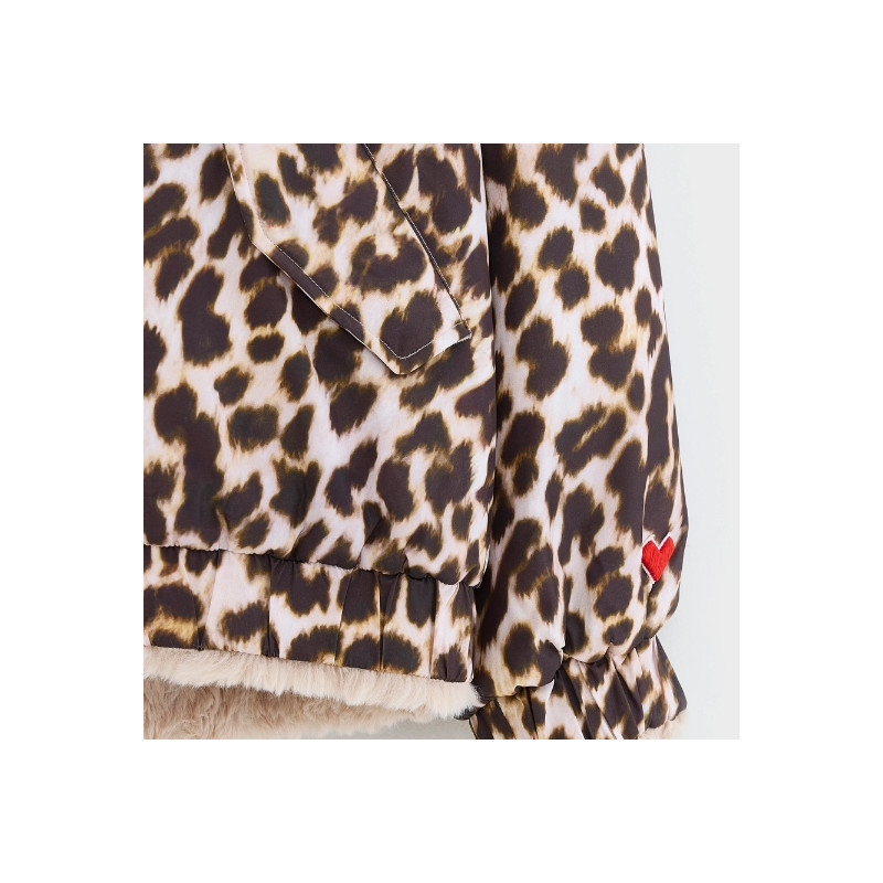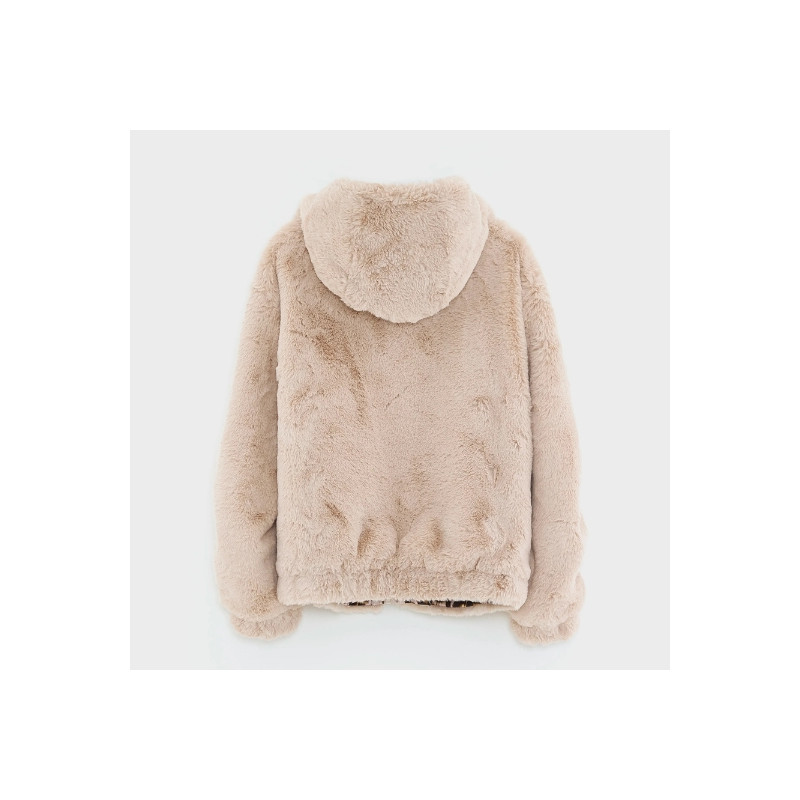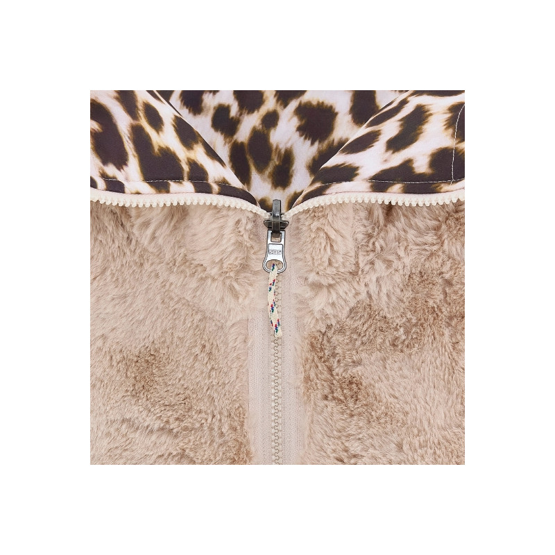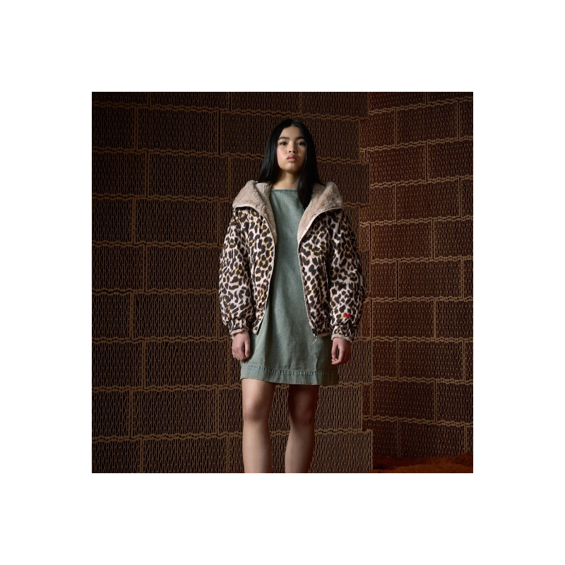 La veste réversible Bellerose combine un côté imprimé léopard et un côté fausse fourrure beige. Avec sa coupe bomber, sa capuche, ses poches latérales et sa fermeture zippée, elle offre style et confort au quotidien.