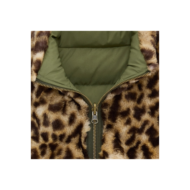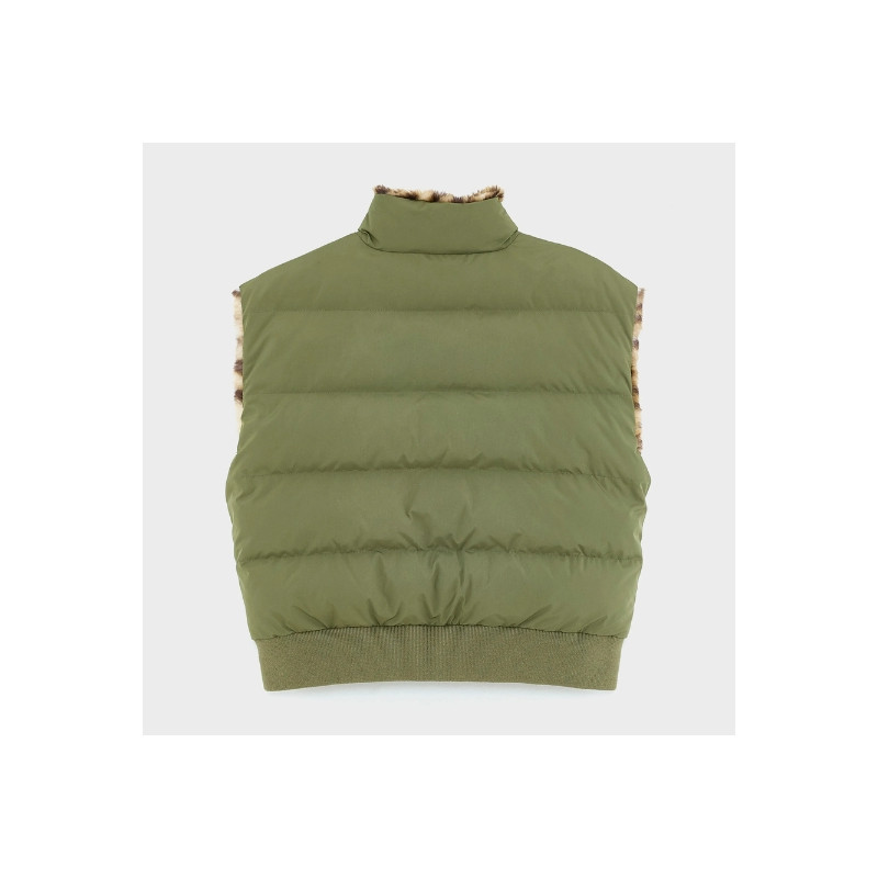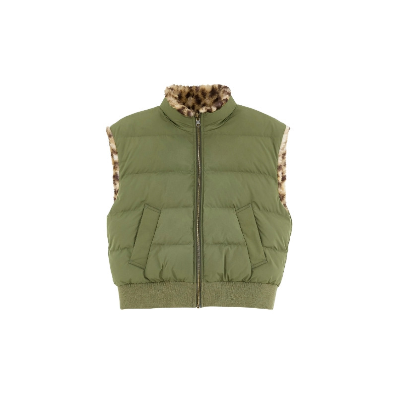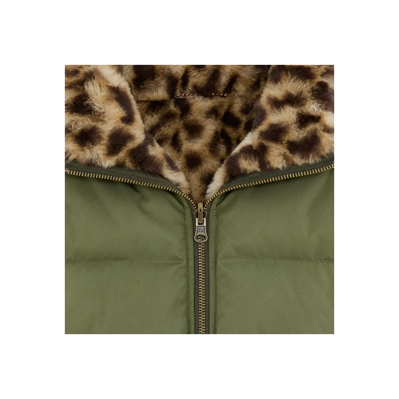 La veste sans manches réversible Bellerose offre deux styles en un : une face en fausse fourrure imprimé léopard et une face en tissu matelassé kaki. Sa coupe oversized, son ourlet côtelé et son rembourrage garantissent confort et chaleur. Pratique et tendance, elle se ferme par un zip sur le devant.