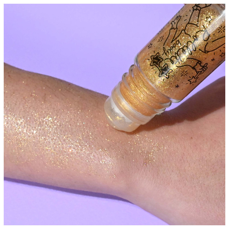 Découvrez le body roll-on pailleté couleur or jaune de la marque Nailmatic. Ce produit ludique s'applique généreusement sur le corps (bras, jambes, etc.) pour apporter une touche pailletée à la peau. Enrichi en aloe vera, il hydrate en même temps. Nailmatic privilégie les composants naturels et les produits vegan pour ses créations.
