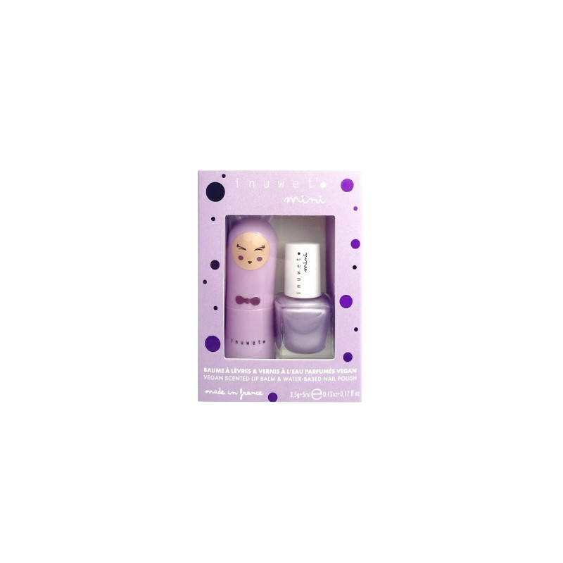 Découvrez chez little&tall, notre nouveau duo baume à lèvres et vernis de la marque Inuwet. Un baume à lèvres et un vernis coloris "mauve" le tout parfumé à la guimauve & à la myrtille. Enrichis en beurre de karité et huile de macadamia, ces baumes nourrissent, réparent et protègent efficacement les lèvres. Cerise sur le lapin : la formule des deux produits est vegan. C'est une parfaite idée de cadeau !