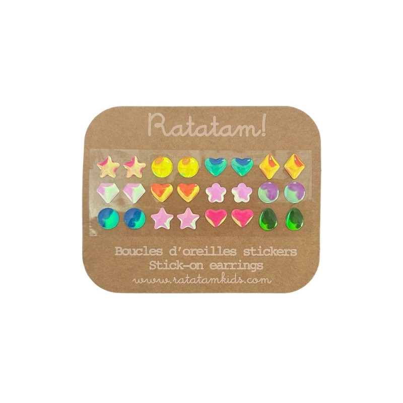 Découvrez le lot de 12 Boucles d’oreilles autocollantes de Ratatam et plongez dans un tourbillon de couleurs et de fantaisie !