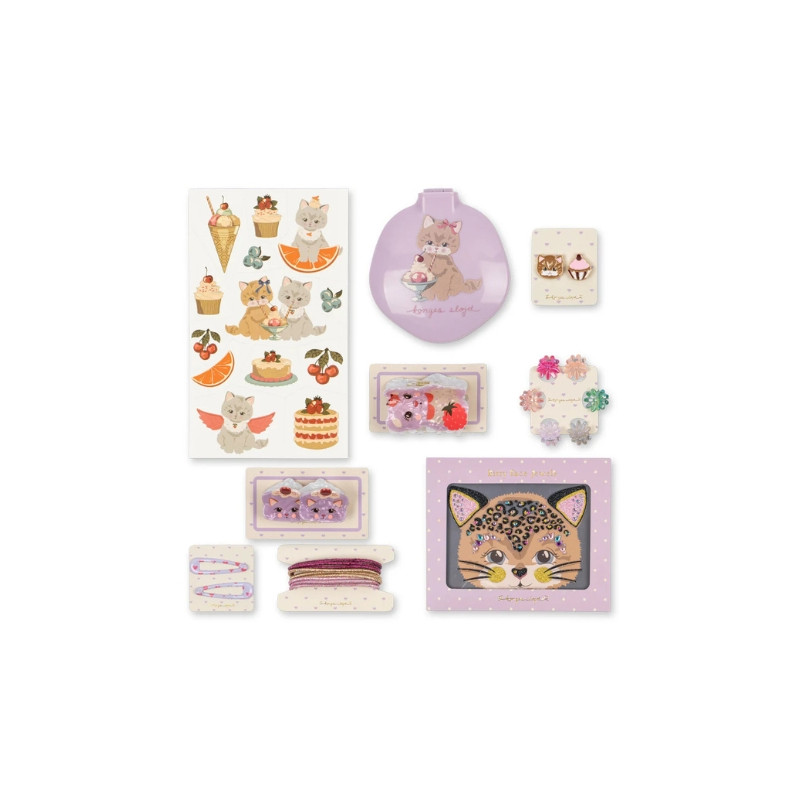 La valise Glam Me Up de Konges Sløjd est un coffret d’accessoires avec miroir, brosse et accessoires cheveux. Ludique et pratique, elle s’emporte partout pour jouer avec style.
