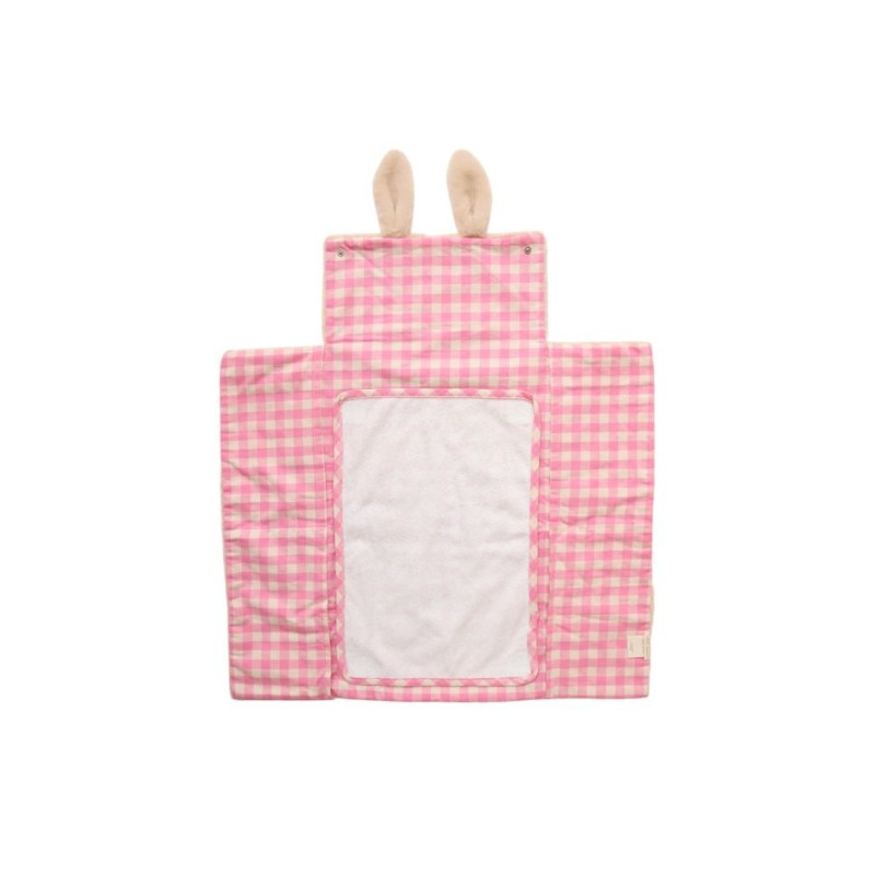 Pratique et tout doux, le matelas à langer nomade Le Petit Souk Chichi Pompon accompagne toutes les sorties avec bébé. Facile à plier et à glisser dans un sac, il offre un confort moelleux grâce à son extérieur en fausse fourrure crème et son intérieur en coton à carreaux vichy rose.