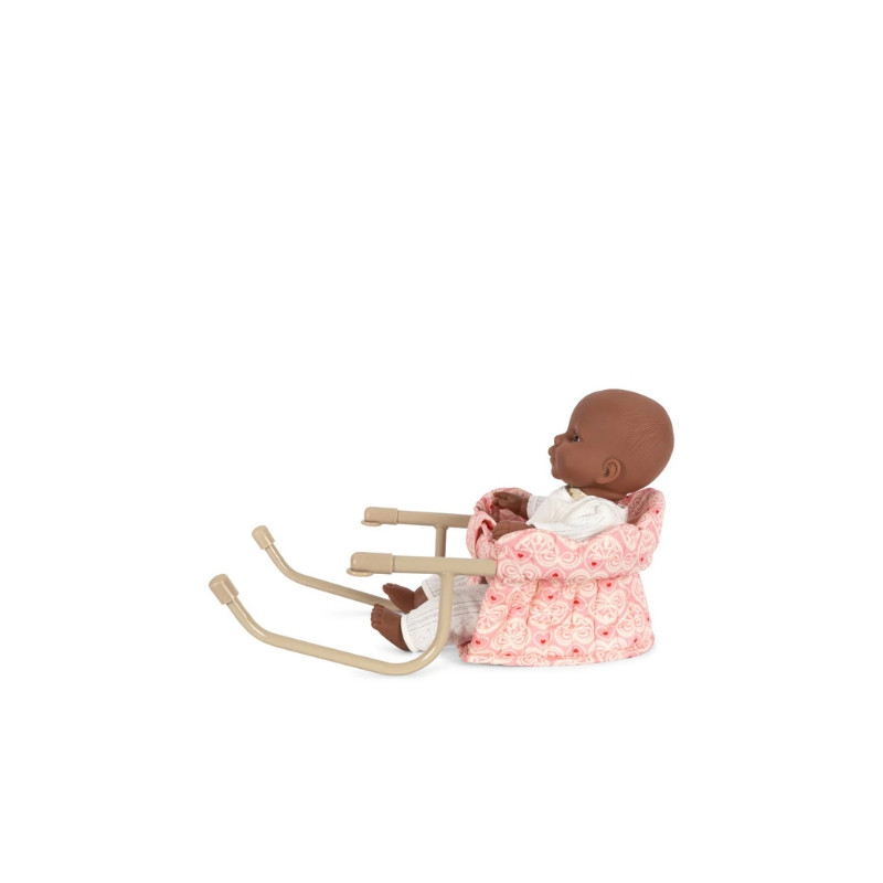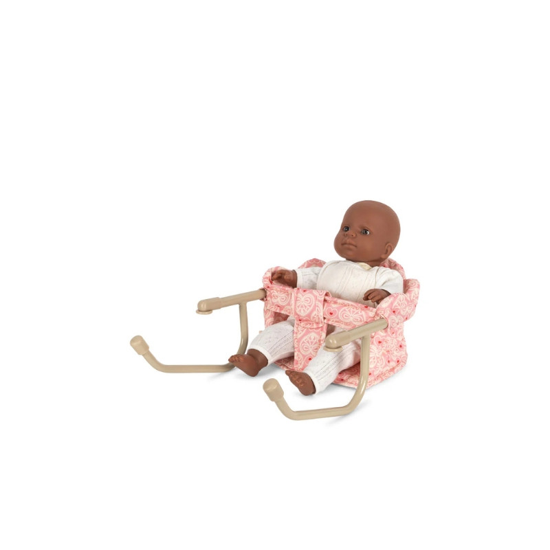 Offrez à votre mini compagnon de jeu un siège VIP à l’heure des repas avec cette adorable chaise de table pour poupée signée Konges Slojd. Ultra stylée avec son imprimé à nœuds et son matelassage douillet, elle s’accroche en un clin d’œil au bord de la table pour partager le goûter, le dîner ou une grande discussion de poupées très sérieuse. Conçue avec des bords festonnés tout en délicatesse et une structure solide en fer, elle combine charme rétro et praticité moderne.