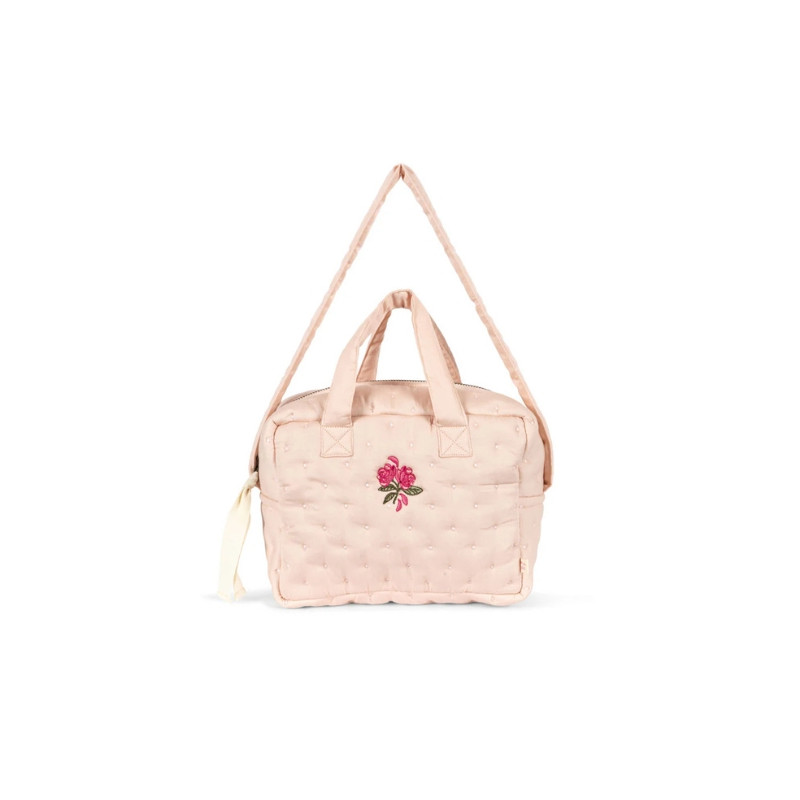 Sac à langer avec bandoulière, poignée, poche extérieure et fermeture éclair, parfait pour les poupées.