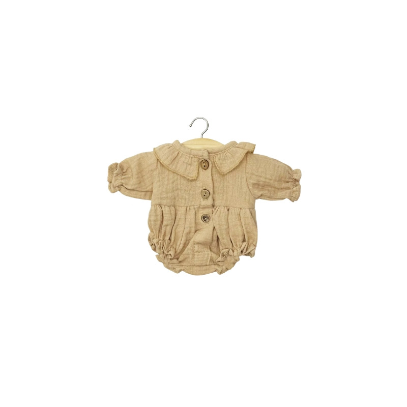 La barboteuse Léonore habille les poupées Minikane Gordis (34 et 37 cm) avec douceur et élégance. Confectionnée en gaze de coton, elle offre un tombé léger et une allure raffinée. Ses manches longues apportent une touche intemporelle, parfaite pour compléter la garde-robe des poupées avec style.
