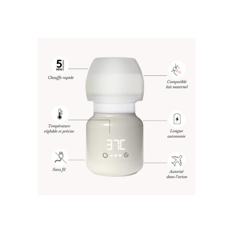 Le chauffe-biberon TooGo de Elhée est l’allié nomade des jeunes parents. Compact, léger et sans fil, il chauffe le lait maternel, l’eau ou les préparations infantiles rapidement et uniformément, tout en préservant les nutriments. Rechargeable via USB-C, il offre jusqu’à 12 h d’autonomie. Idéal pour les sorties avec bébé.