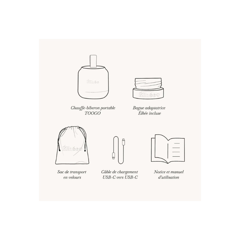 Le chauffe-biberon TooGo de Elhée est nomade, sans fil et ultra-rapide. Il chauffe le lait ou l’eau à température idéale tout en préservant les nutriments. Compact, léger et rechargeable en USB-C, il offre jusqu’à 12 h d’autonomie.