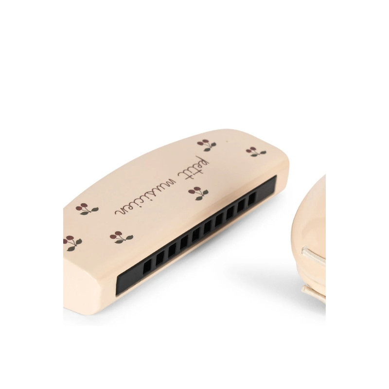 Valise avec harmonica, maracas et castagnette en bois certifié FSC™. Adapté dès 3 ans, certifié CE. Ne convient pas aux moins de 36 mois.