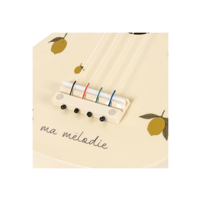 Ukulélé en bois à 4 cordes, en contreplaqué et pin certifiés FSC™. Finition brillante, dimensions 5 x 18 x 54 cm. Convient dès 3 ans.