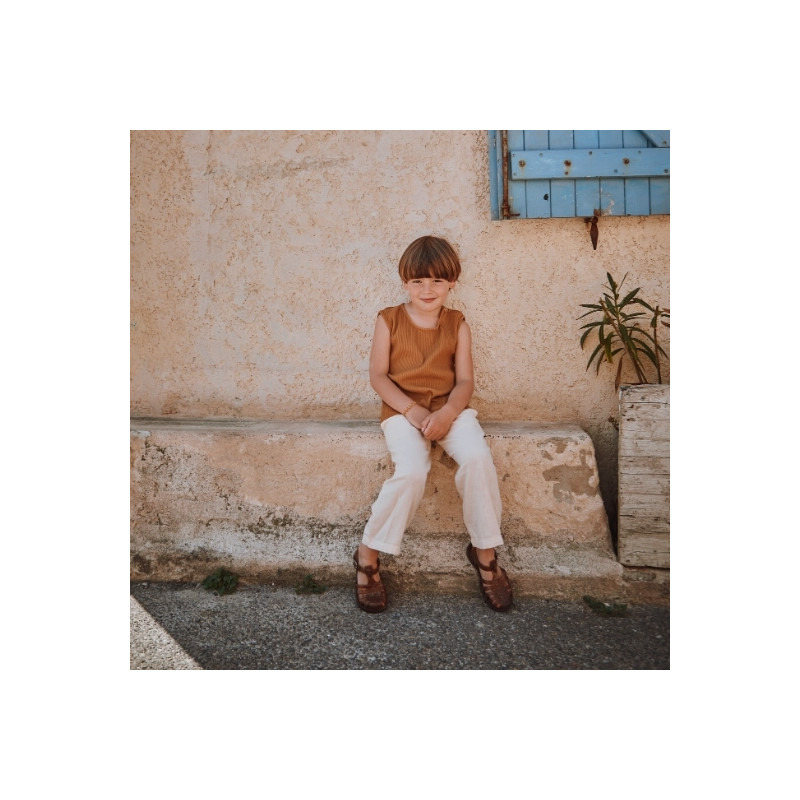 Le pantalon Pomelos enfant couleur sun kiss est une promesse de douceur et de légèreté pour les petits baroudeurs en quête d’aventure.