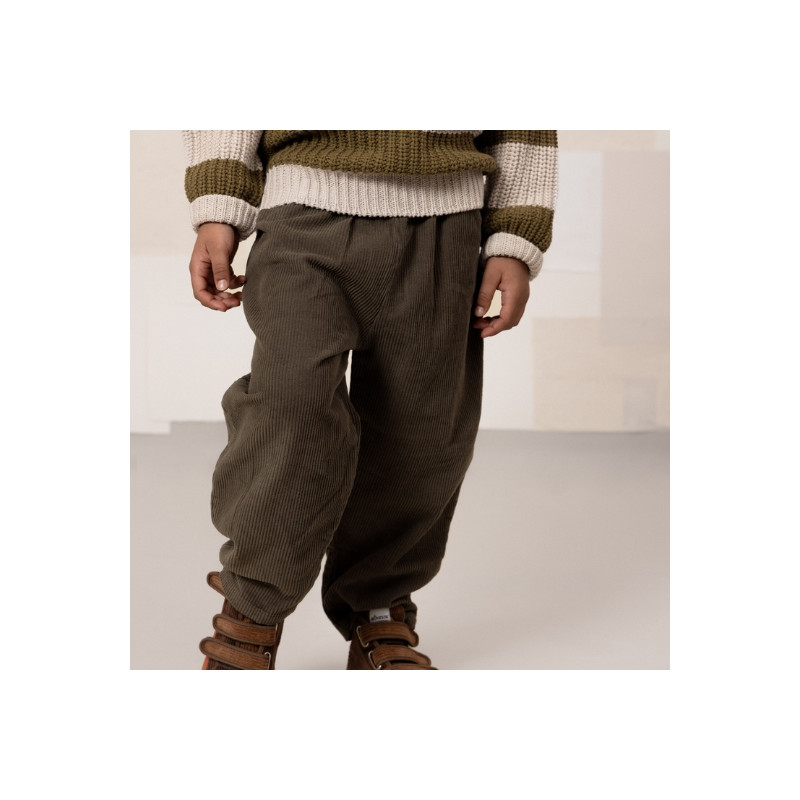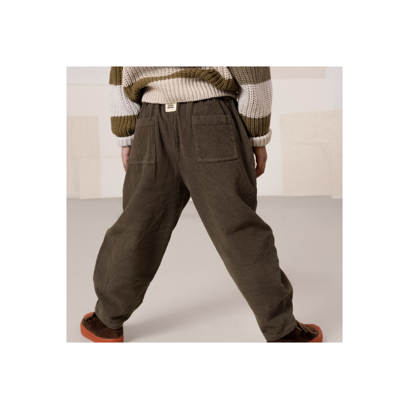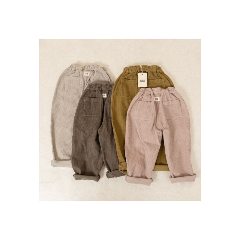 Le pantalon Carrot Corderoy en velours côtelé de Studio Bohème associe confort et style rétro avec sa coupe carotte moderne et sa taille élastiquée.