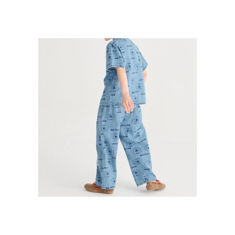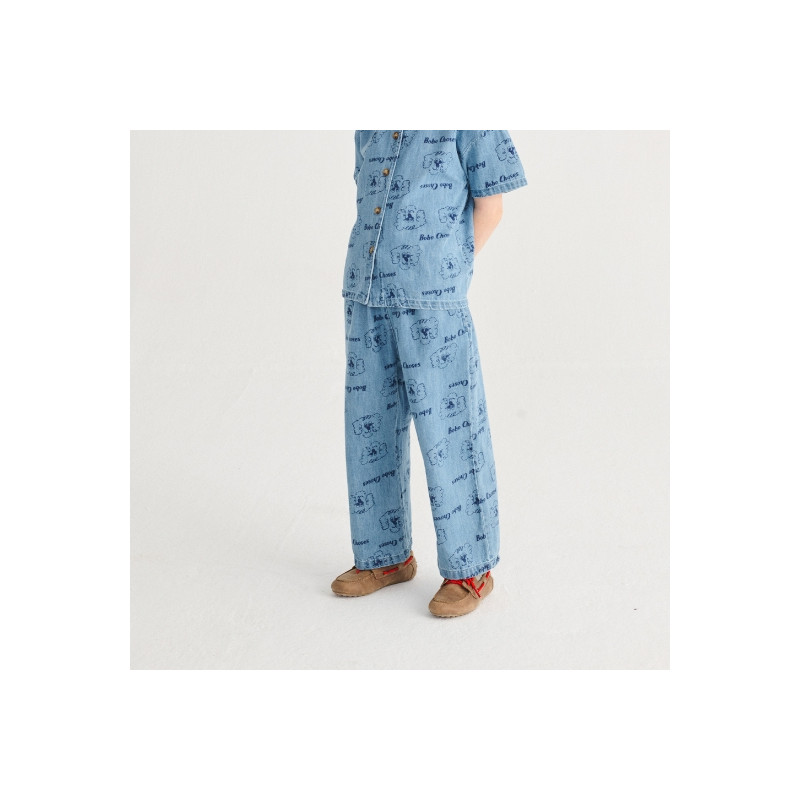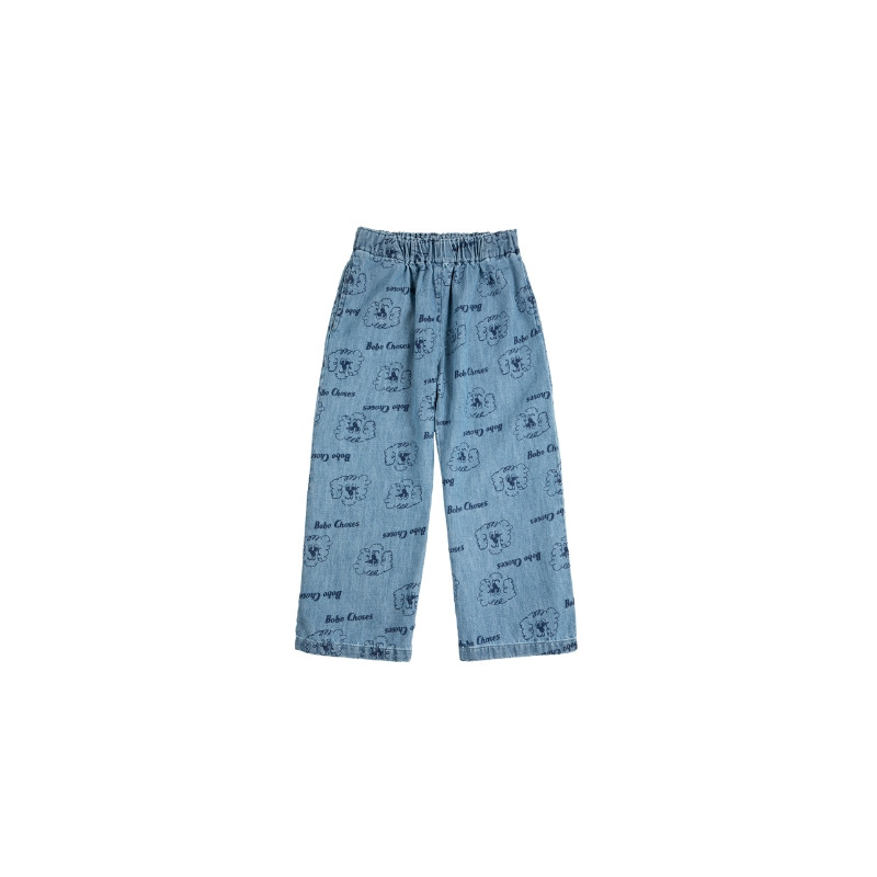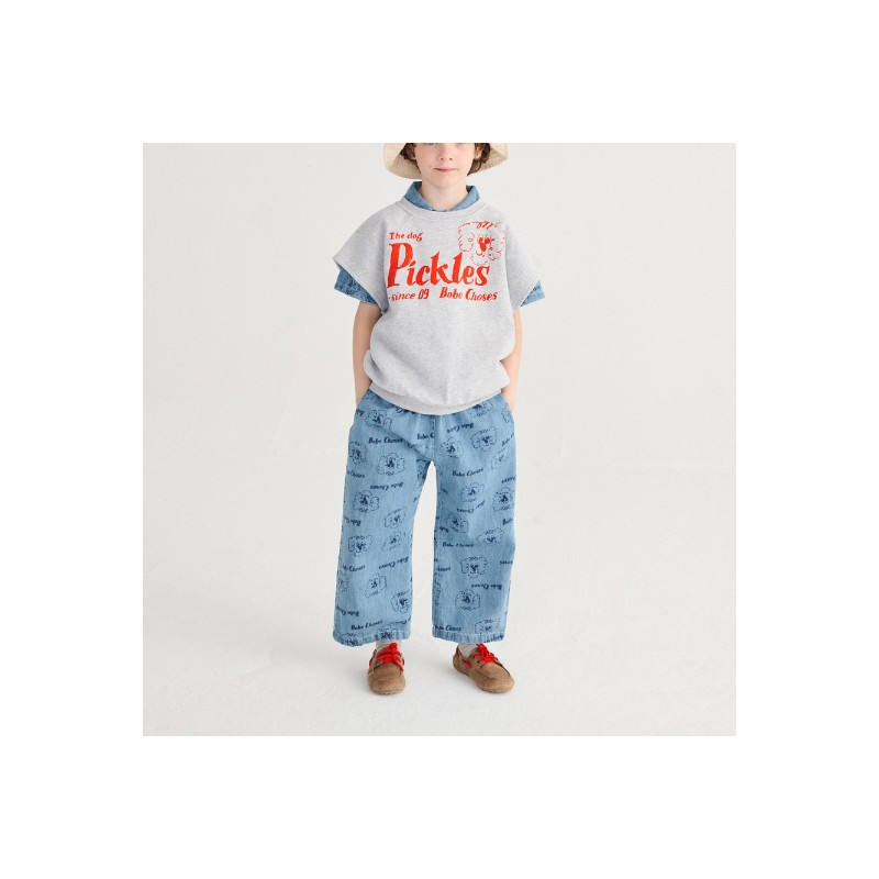Pantalon enfant en denim léger bleu, à imprimé Pickles all over.