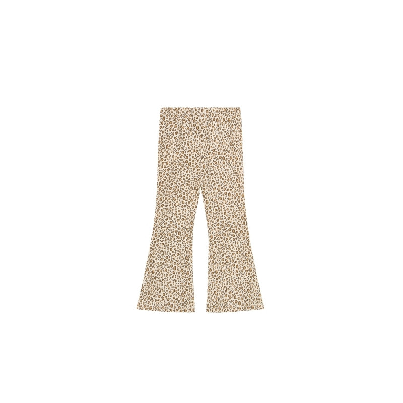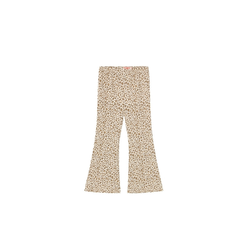 Pantalon enfant crème à imprimé léopard, avec une coupe évasée et confortable. Une pièce forte et stylée, idéale pour un look fun et contemporain.