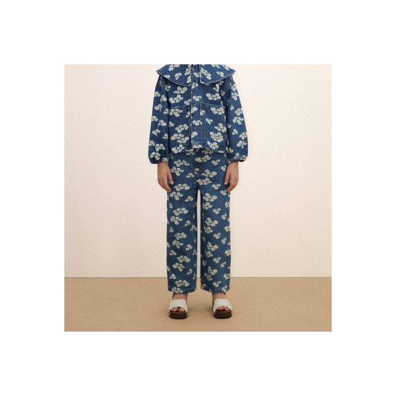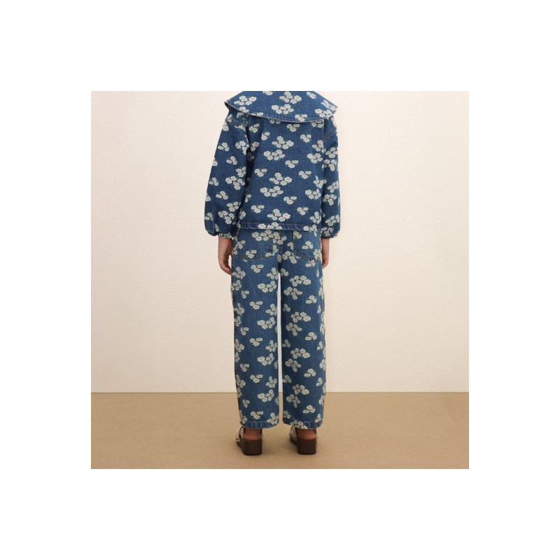 Jean enfant en denim délavé avec imprimé blossoms, coupe droite et poches pratiques. Une pièce confortable et pleine de charme pour tous les jours.