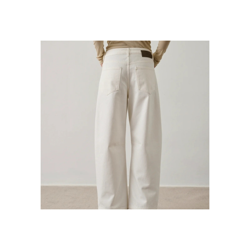 Jean Eliott droit blanc de la marque Soeur. Une pièce essentielle à la coupe élégante, idéale pour des looks lumineux et contemporains.