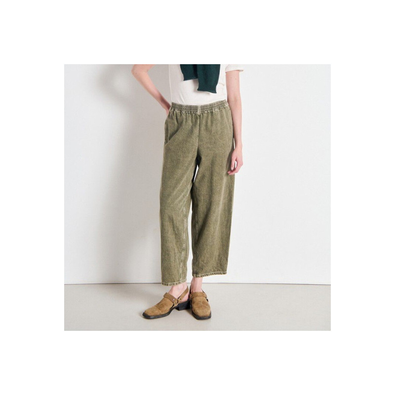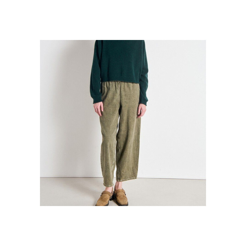 Le pantalon Uzatown d’American Vintage affiche une coupe carotte ample en denim souple, rehaussée d’un coloris kaki effet usé. Confortable et facile à enfiler grâce à sa taille élastiquée, il est conçu en coton mélangé dont 40 % recyclé.