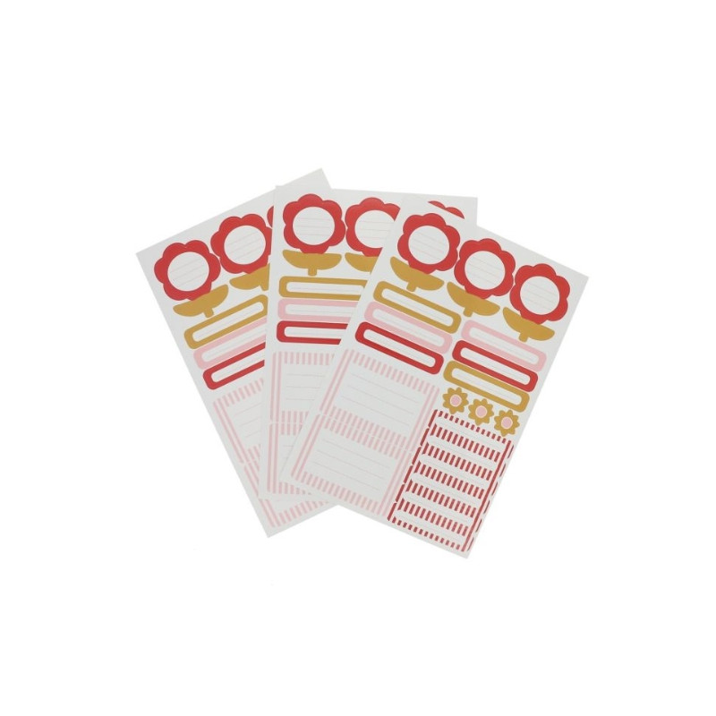 Lot d’étiquettes fleurs et rayures pour personnaliser cahiers, livres et fournitures. Pratiques et faciles à coller, elles apportent une touche rétro et colorée à l’école comme à la maison.