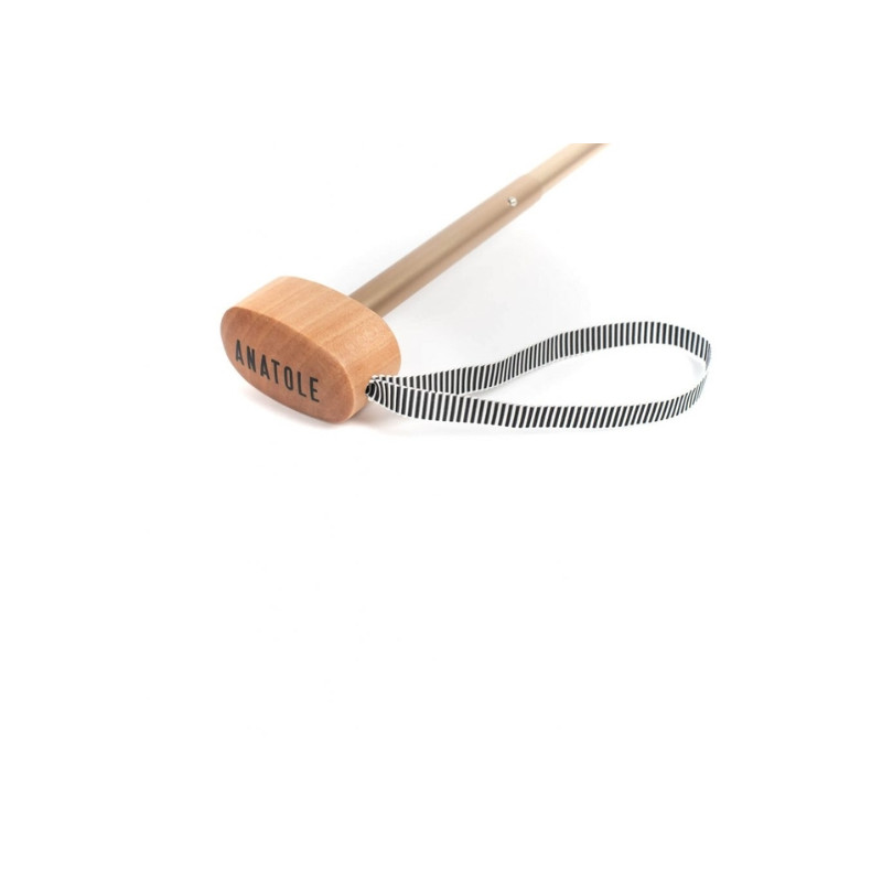 | COMPOSITION | TOILE : 100% recyclée (rPET) tissu microfibres 190 microfils - ATTACHE : bouton pression métal gravé - POIGNÉE : bois naturel avec logo « ANATOLE » gravé |