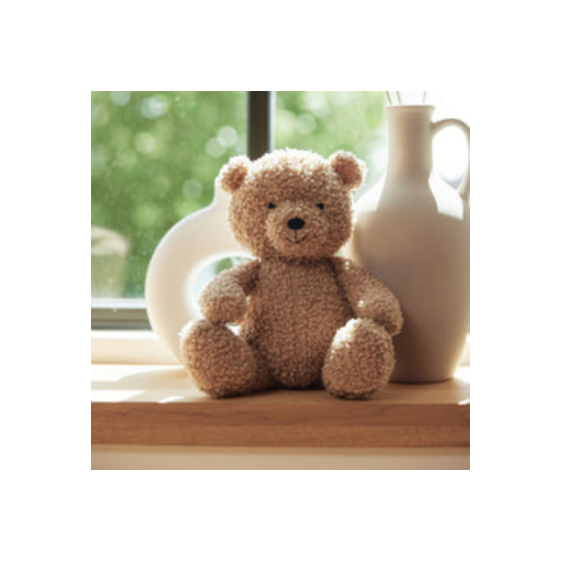 Découvrez la peluche Teddy bear coloris biscuit de la marque Jollein. Toute douce et facile à saisir, ce petit ours deviendra le doudou préféré de votre enfant. C'est le compagnon idéal pour le coucher, les câlins et les moments de jeux.