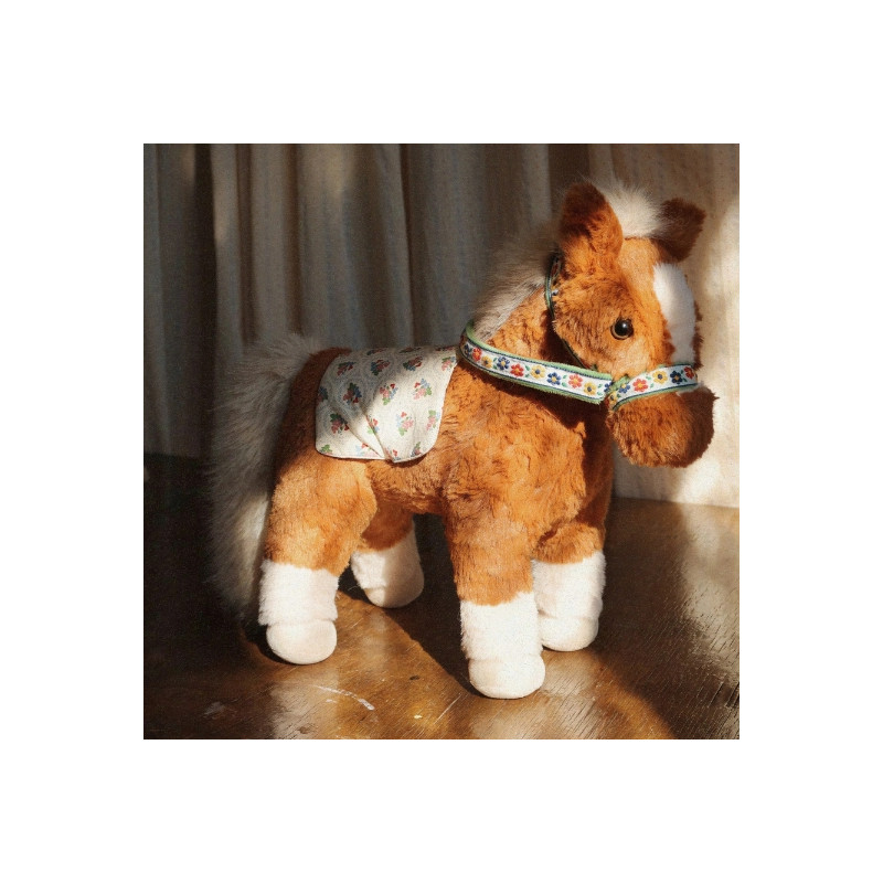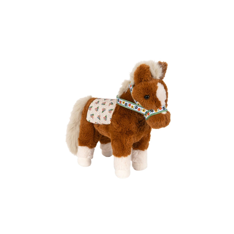 Fiona le cheval de chez Konges Sløjd est une peluche majestueuse et pleine de tendresse. Avec sa douce crinière crème, sa selle fleurie et son harnais brodé, elle invite à de belles aventures imaginaires. Facile à attraper et à câliner, Fiona deviendra vite la fidèle compagne de jeu des petits cavaliers.