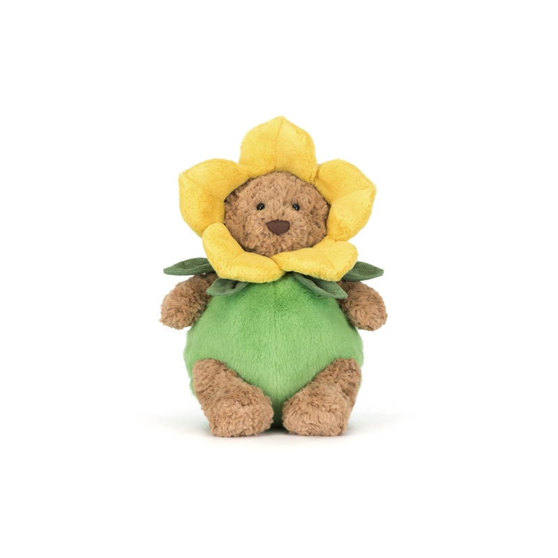 Peluche ours Bartholomew en tenue Daffodil signée Jellycat, douce et pleine de charme. Un compagnon iconique revisité avec une touche florale et joyeuse.