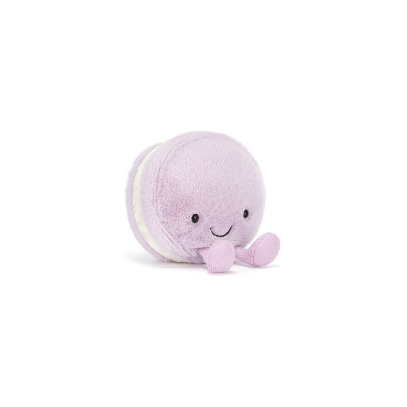 La peluche Amuseables macaron May de chez Jellycat est une petite gourmandise pleine de douceur. Avec sa teinte lavande délicate et sa texture moelleuse, il évoque un macaron raffiné tout juste sorti de la pâtisserie. Son sourire brodé et ses petites jambes en corde lui donnent une personnalité irrésistible, à la fois tendre et espiègle. Parfait pour décorer une chambre, offrir un clin d’œil sucré ou simplement pour le plaisir d’un câlin tout doux.