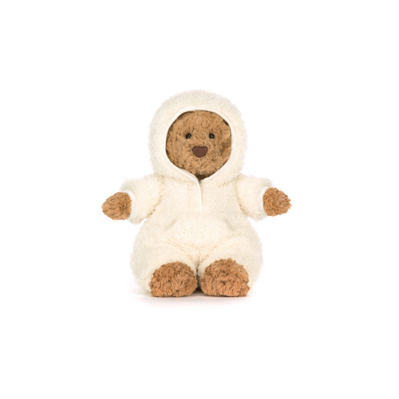 Bartholomew en combinaison moumoute est une peluche Jellycat ultra douce et réconfortante. Un compagnon tendre et chaleureux, parfait pour les câlins du quotidien.