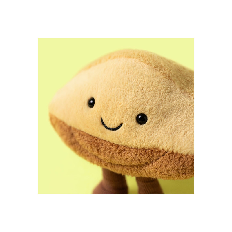 La peluche Amuseables madeleine Margaux de Jellycat est une adorable peluche inspirée de la célèbre gourmandise française. Avec sa forme délicatement bombée et sa teinte dorée, elle évoque une madeleine tout juste sortie du four. Son sourire brodé et ses petites jambes en corde lui donnent une personnalité tendre et pleine de malice. Douce et moelleuse, elle est parfaite pour décorer une chambre, offrir un clin d’œil gourmand ou partager un moment câlin réconfortant.