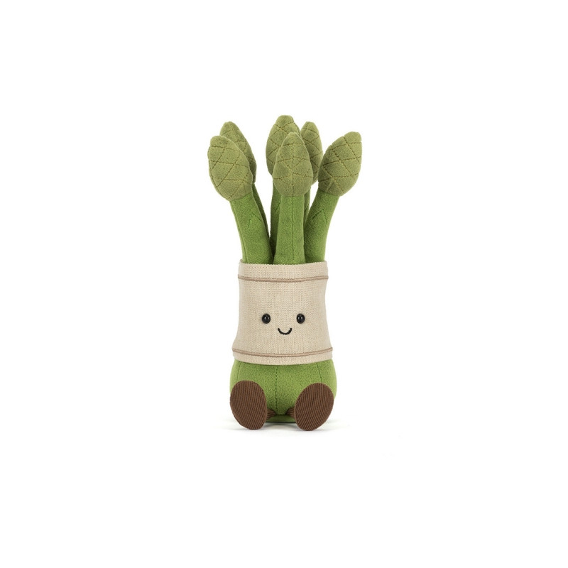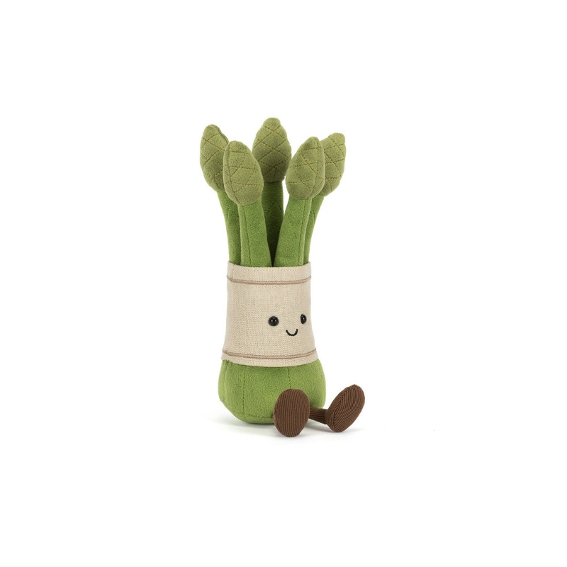 Jellycat signe encore une création pleine d’humour avec Amuseables Asparagus, un compagnon aussi attachant qu’ambitieux. Bien décidé à battre tous les records, cet adorable petit légume à la personnalité débordante ne manque jamais une occasion de se dépasser. Entre ses talents improbables et son énergie contagieuse, il enchaîne les exploits avec une détermination sans faille.