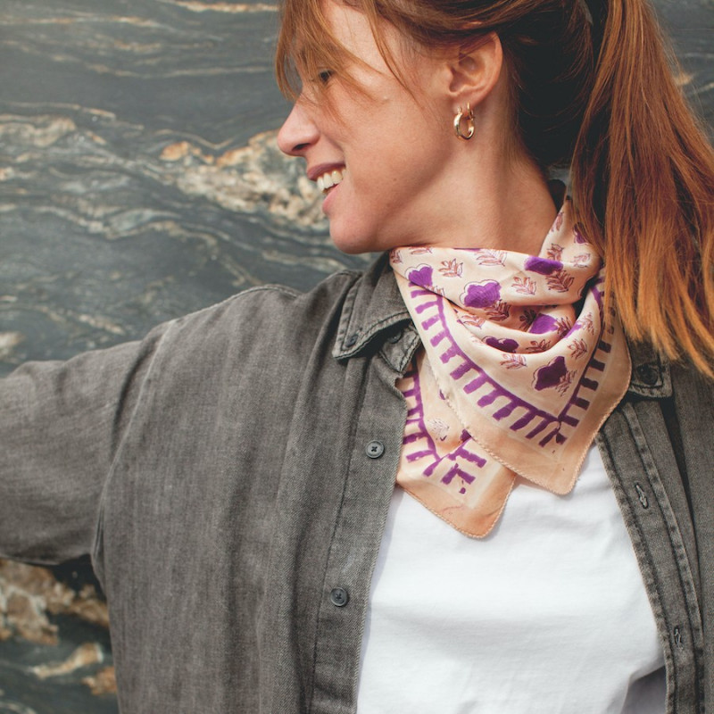Pour chacune de ses collections, la marque s'inspire des couleurs de la nature et met en scène des imprimés exclusifs. Chaque motif et couleur sont pensés avec amour en France, pour ensuite être confectionnés avec soin en Inde grâce à la technique du block-print. Ce travail artisanal, réalisé à la main à partir d'un tampon sculpté dans le bois et de pigments naturels, fait de chaque accessoire, une pièce unique.