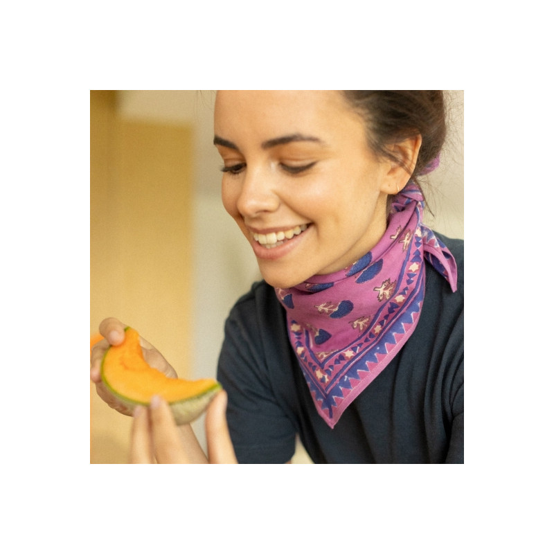 Pour chacune de ses collections, la marque s'inspire des couleurs de la nature et met en scène des imprimés exclusifs. Chaque motif et couleur sont pensés avec amour en France, pour ensuite être confectionnés avec soin en Inde grâce à la technique du block-print. Ce travail artisanal, réalisé à la main à partir d'un tampon sculpté dans le bois et de pigments naturels, fait de chaque accessoire, une pièce unique.