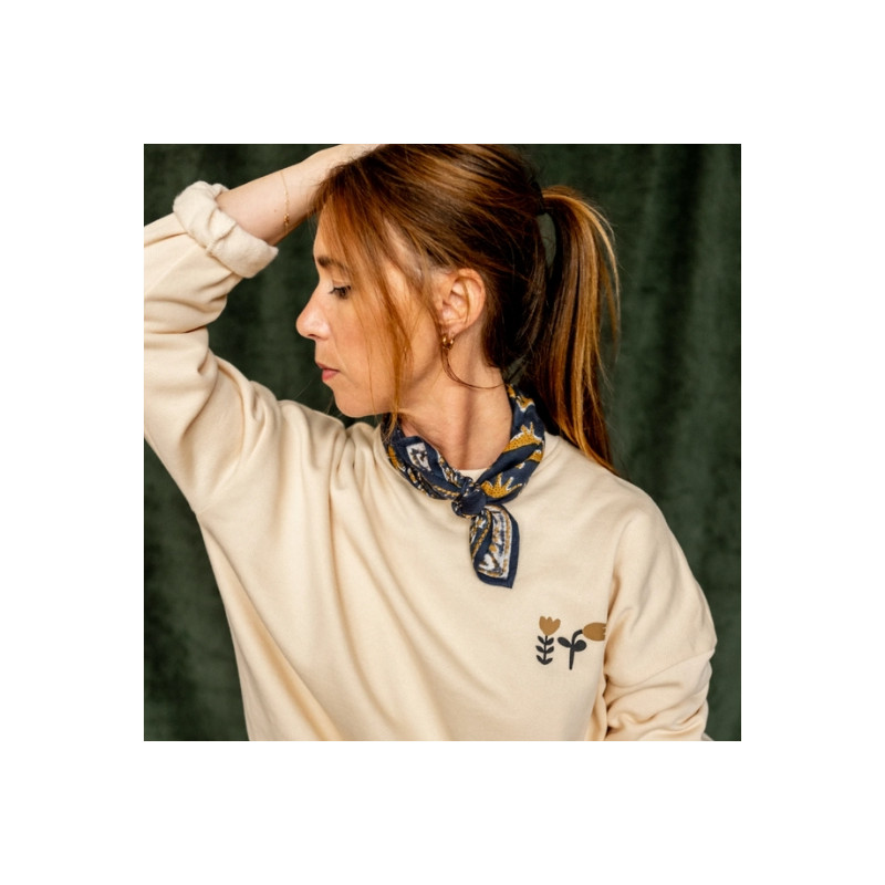 Pour préserver ses jolies couleurs naturelles, nous vous recommandons de laver le foulard à la main avant la première utilisation. Et hop, il est prêt à vous accompagner partout !