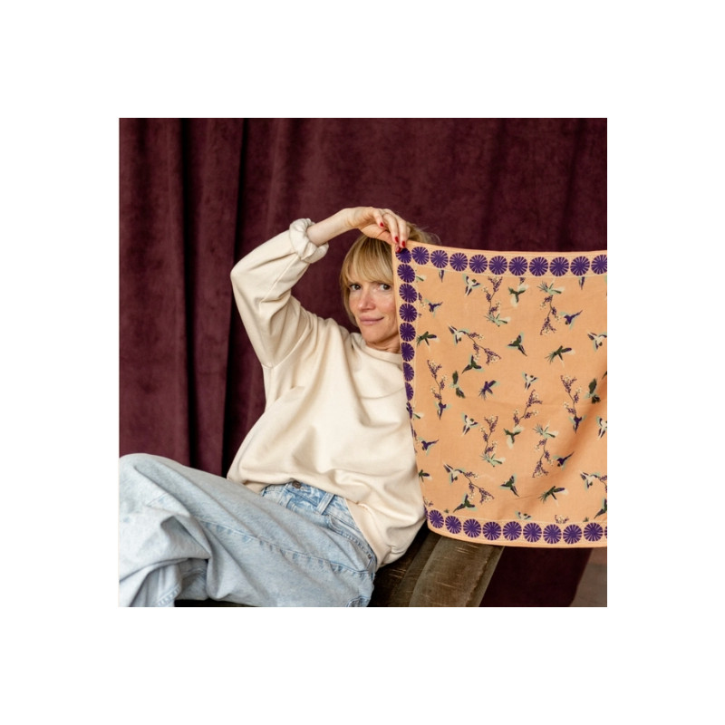 - Confection artisanale : chaque foulard est unique, réalisé en Inde avec la technique du block-print.
