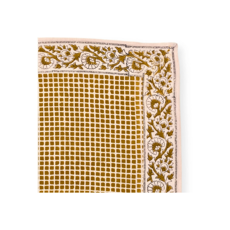Les motifs sont ensuite confectionnés en Inde en utilisant la technique traditionnelle du block-print. Ce procédé artisanal consiste à imprimer les tissus à la main, à partir de tampons sculptés dans le bois et de pigments naturels. Ce savoir-faire ancestral rend chaque pièce unique, reflétant le travail minutieux et l'expertise des artisans indiens.