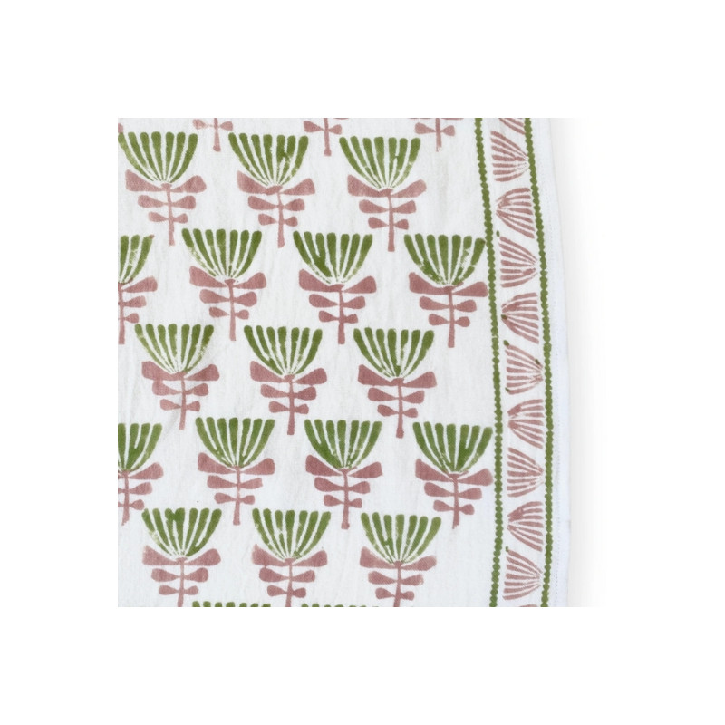 - Confection artisanale en Inde, selon la technique ancestrale du block-print : chaque motif est imprimé à la main à l’aide de tampons sculptés dans le bois.