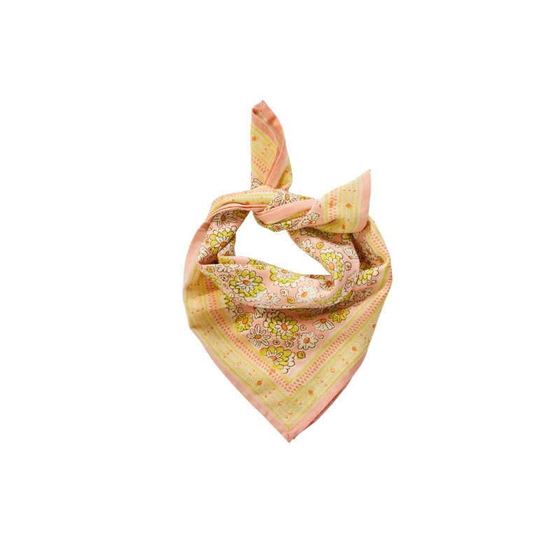 En coton doux, imprimé fait main. Léger, bohème, facile à nouer.