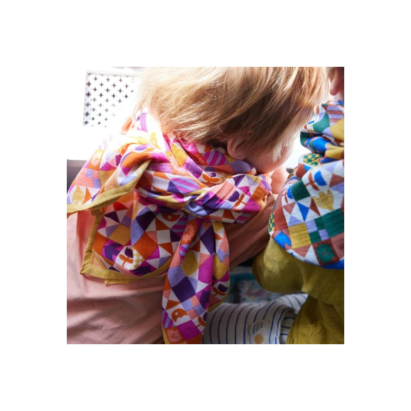 Le foulard PATCHY signé Bonheur du Jour est l’accessoire malin et coloré pour petits et grands. Réalisé à la main en Inde grâce à la technique artisanale du blockprint, chaque foulard est unique. En coton doux, il mesure 60 × 60 cm et se porte aussi bien autour du cou, dans les cheveux ou accroché à un sac. Léger, pratique et facile à détourner, il accompagne toutes les aventures du quotidien avec style.