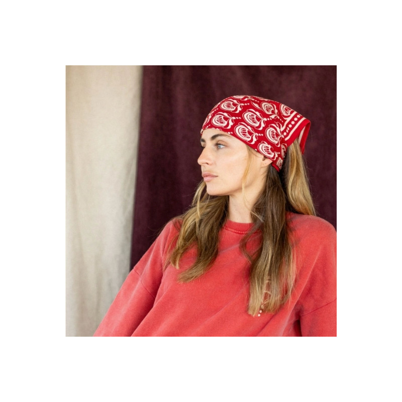 Le foulard Manika WONDERFUL d’Apaches Collections en coton séduit par son imprimé rouge fire graphique. Léger et polyvalent, il se porte autour du cou, dans les cheveux ou au poignet pour dynamiser vos tenues.