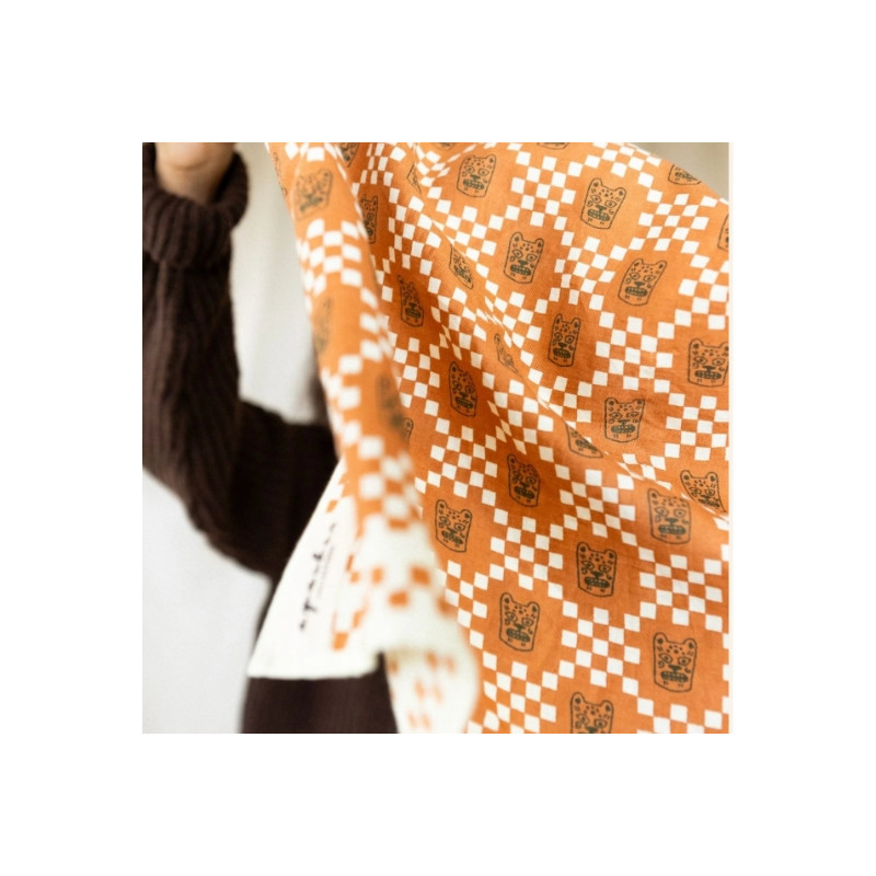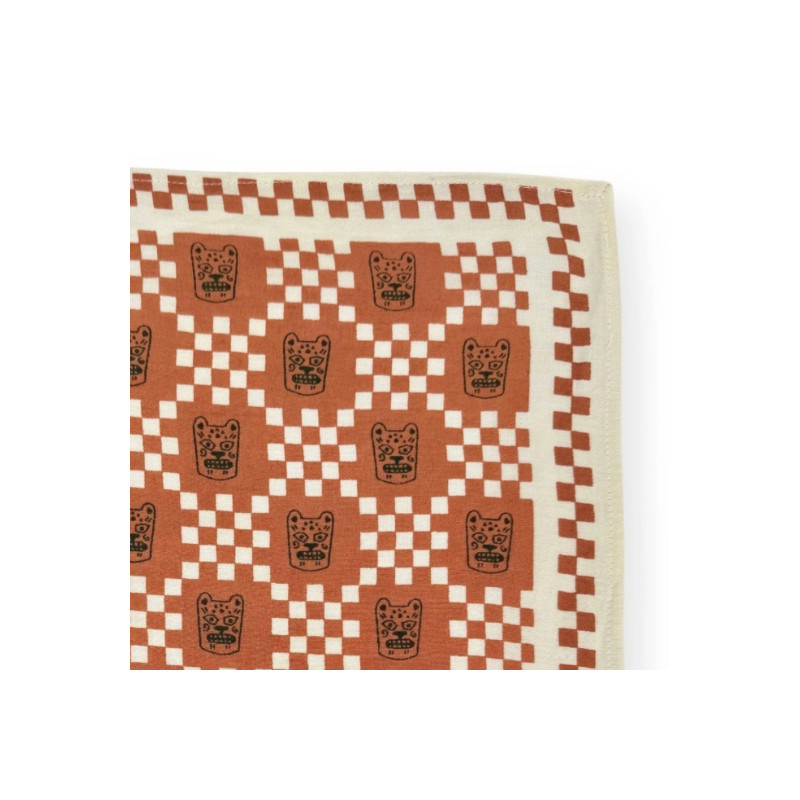 Le foulard Manika tigro camel de Apaches Collections en coton, format 50x50 cm, séduit par son motif tigre graphique et sa teinte chaleureuse. Un accessoire polyvalent pour styliser vos tenues en toute saison.