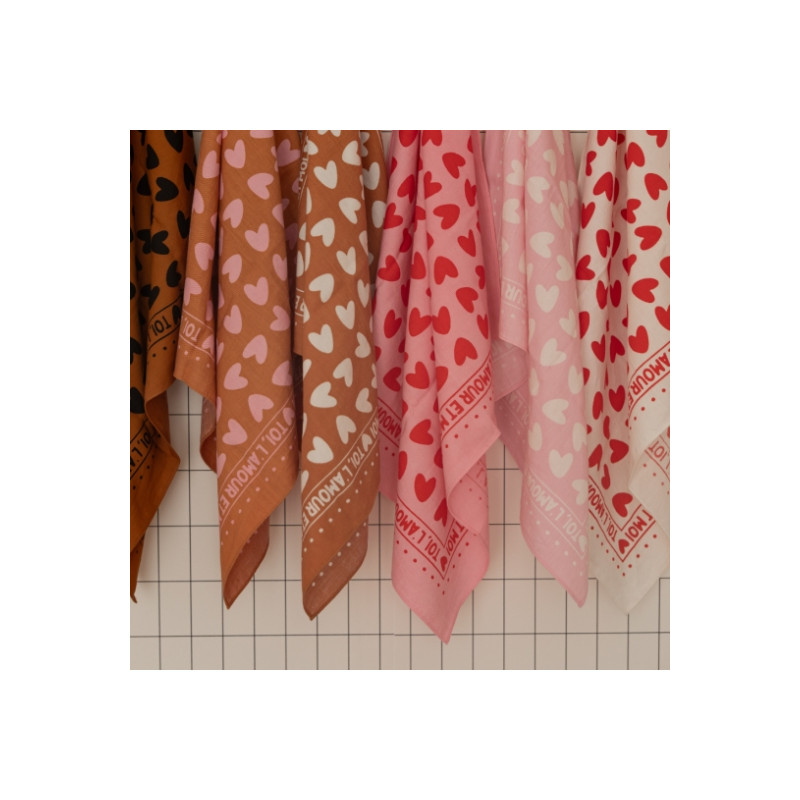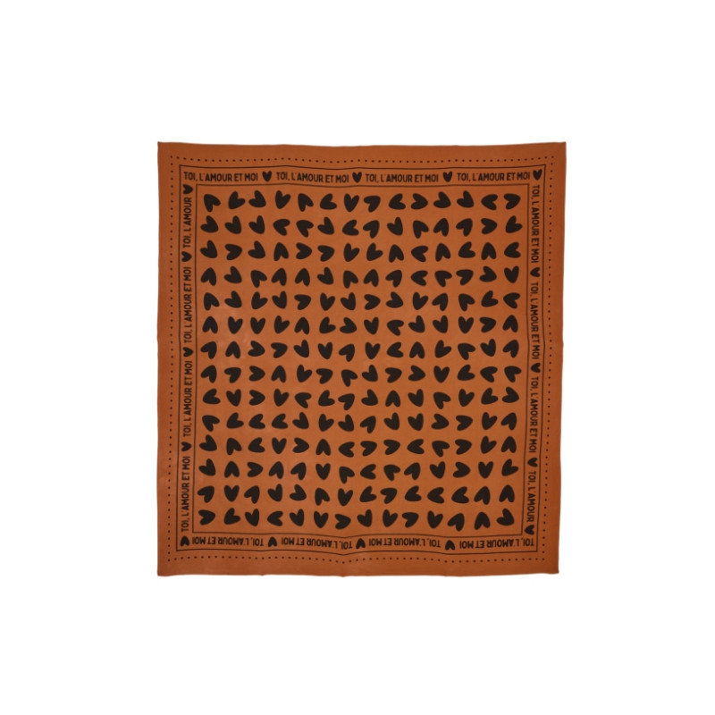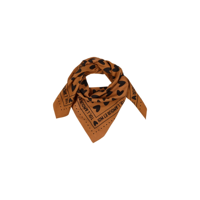 Foulard marron à motifs cœurs noirs, léger et confortable. Un accessoire élégant et polyvalent, idéal pour sublimer chaque tenue avec style.