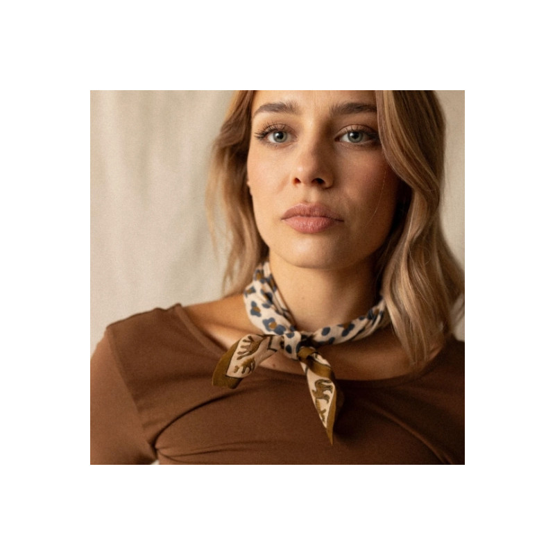 | MODÈLE | Small Foulard Coton Dupatta Leopard Macadamia |